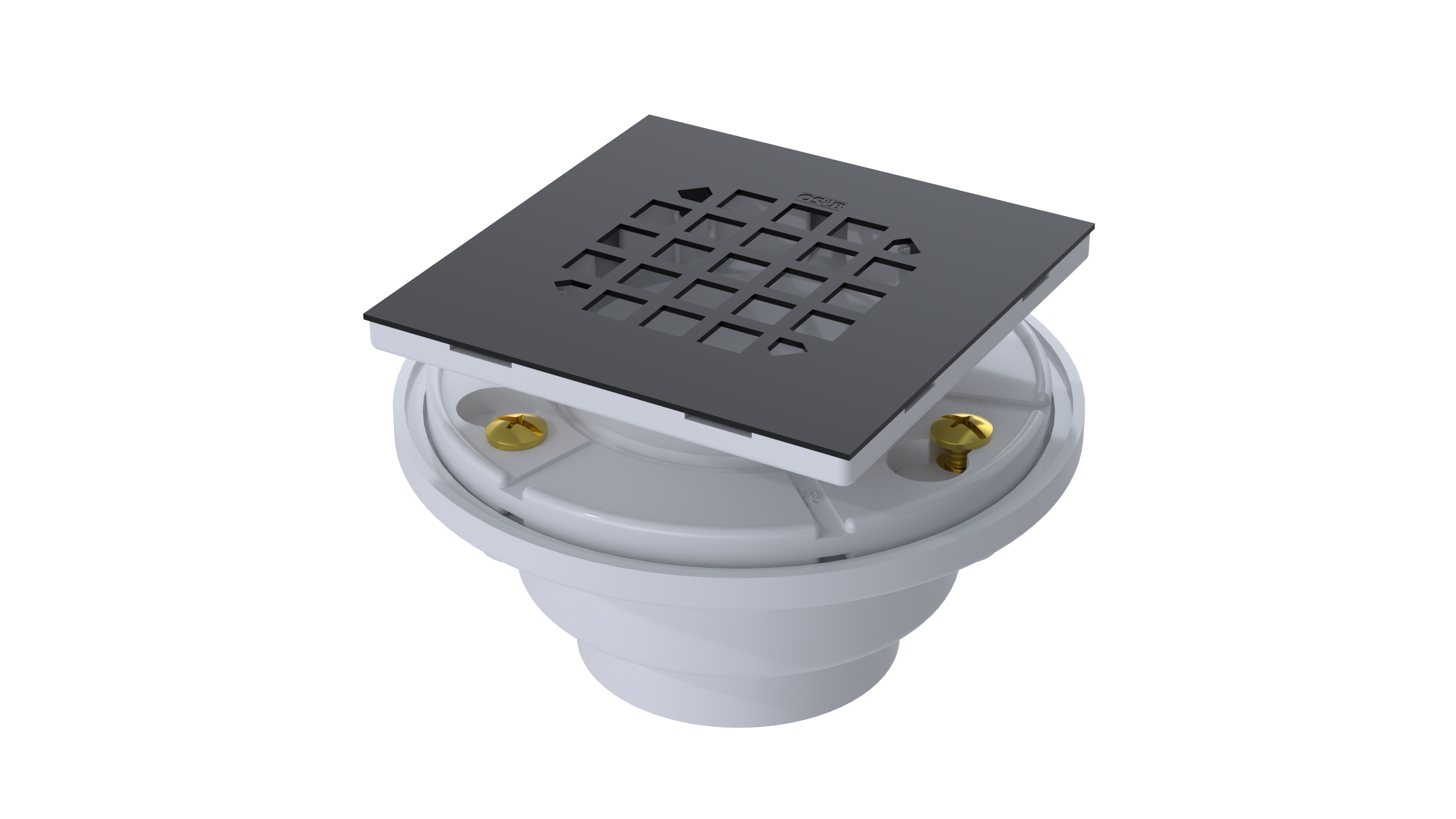 Shower drain shall be 3 piece, 2" PVC outlet with 4-3/16" square snap-fit grate.