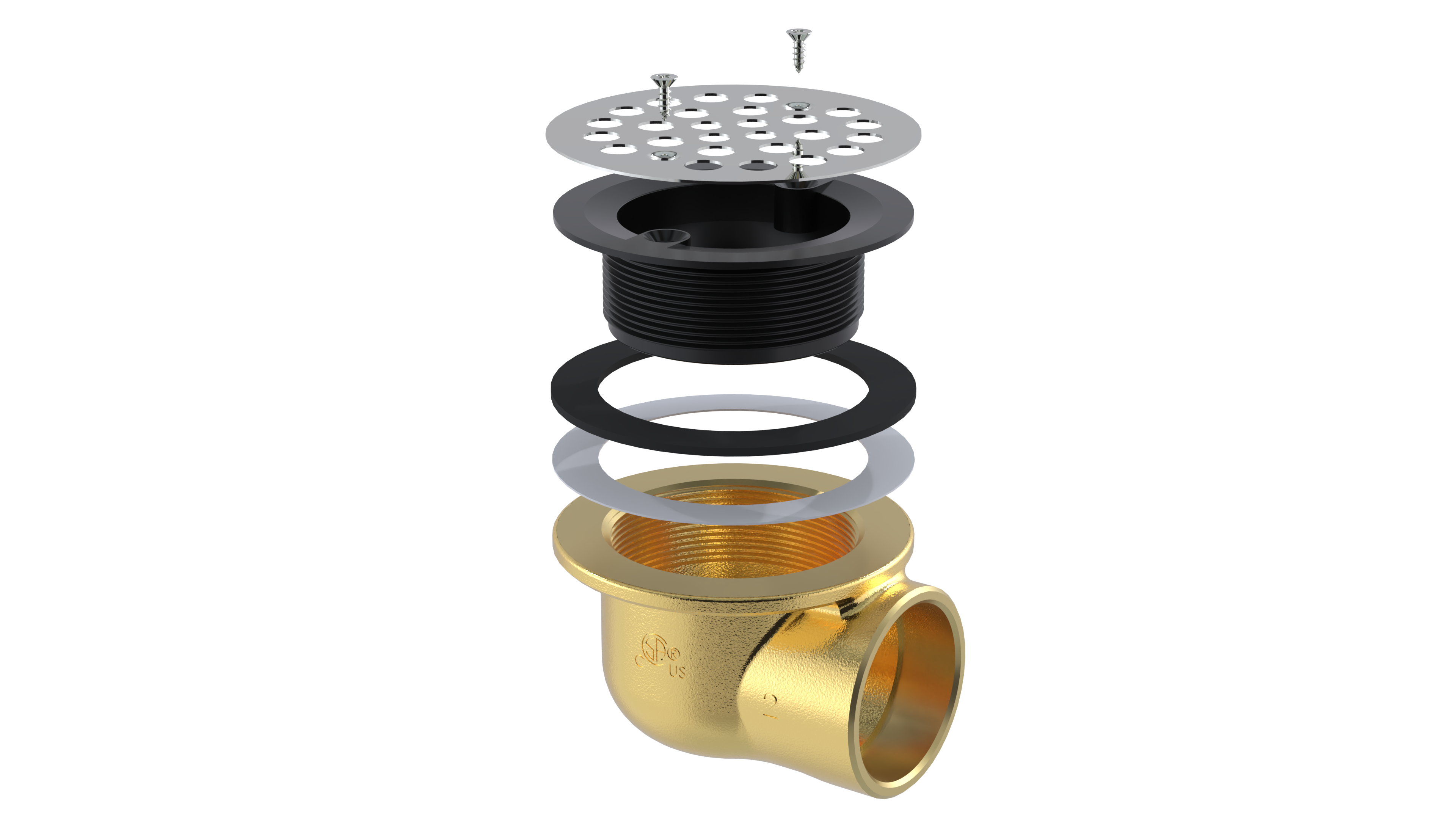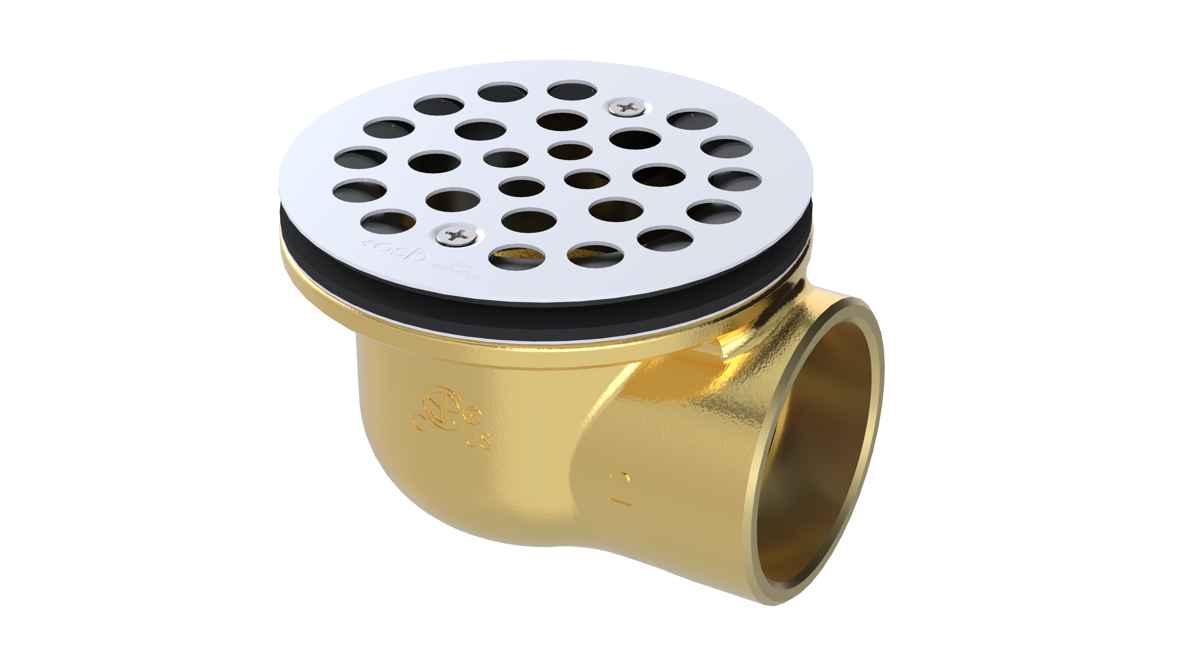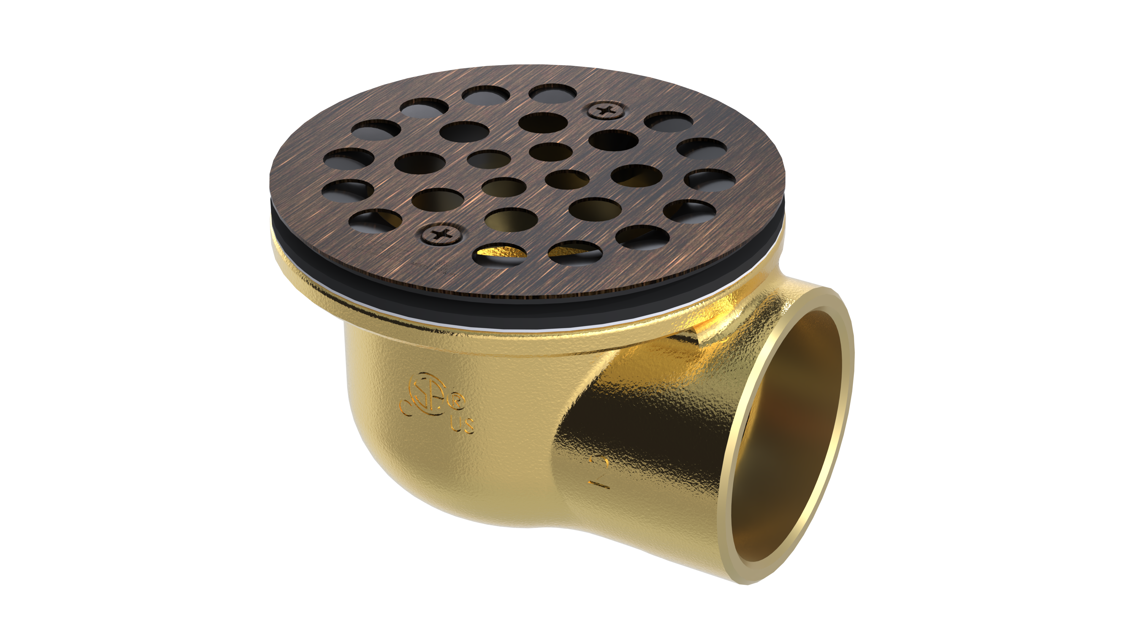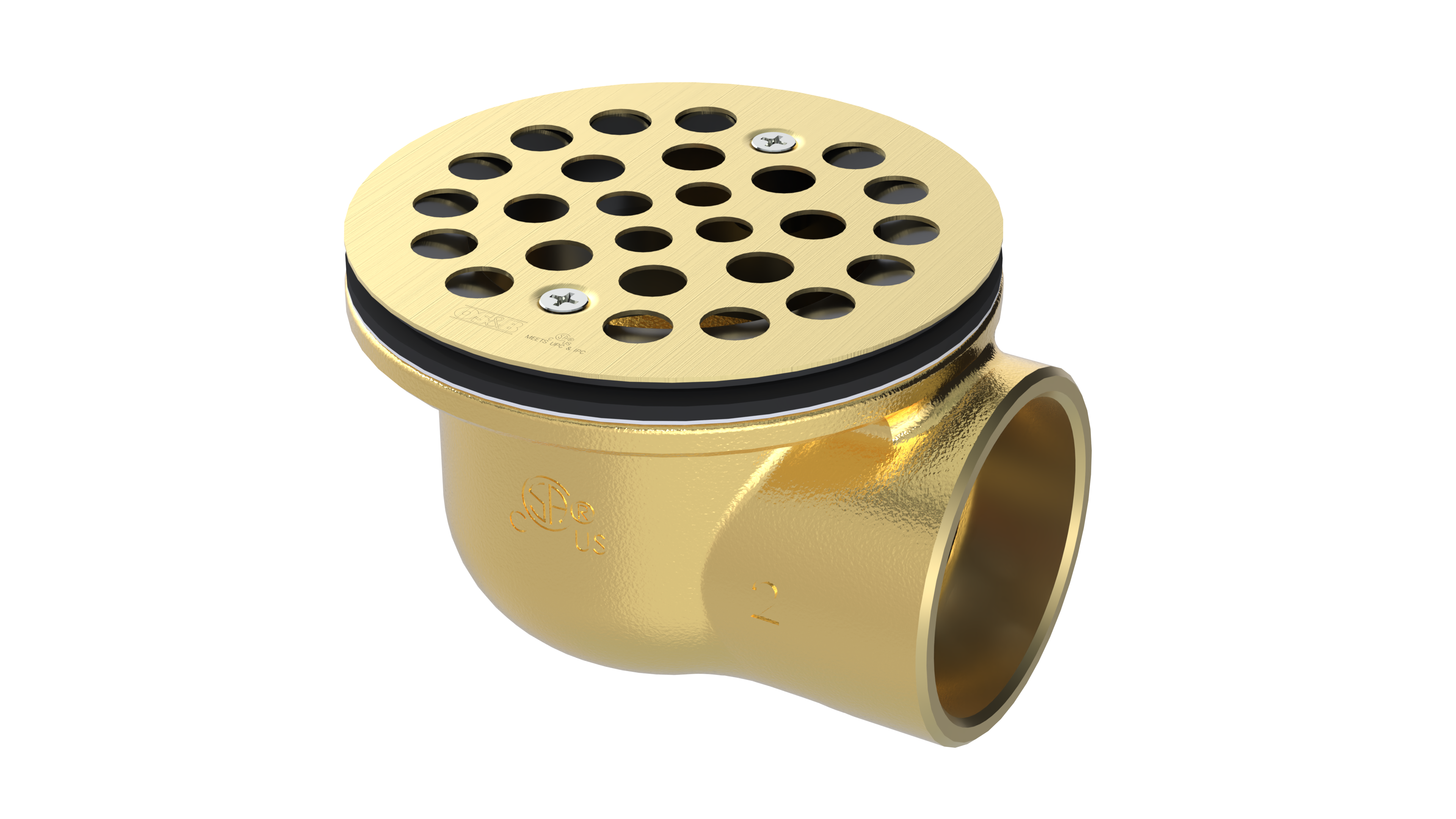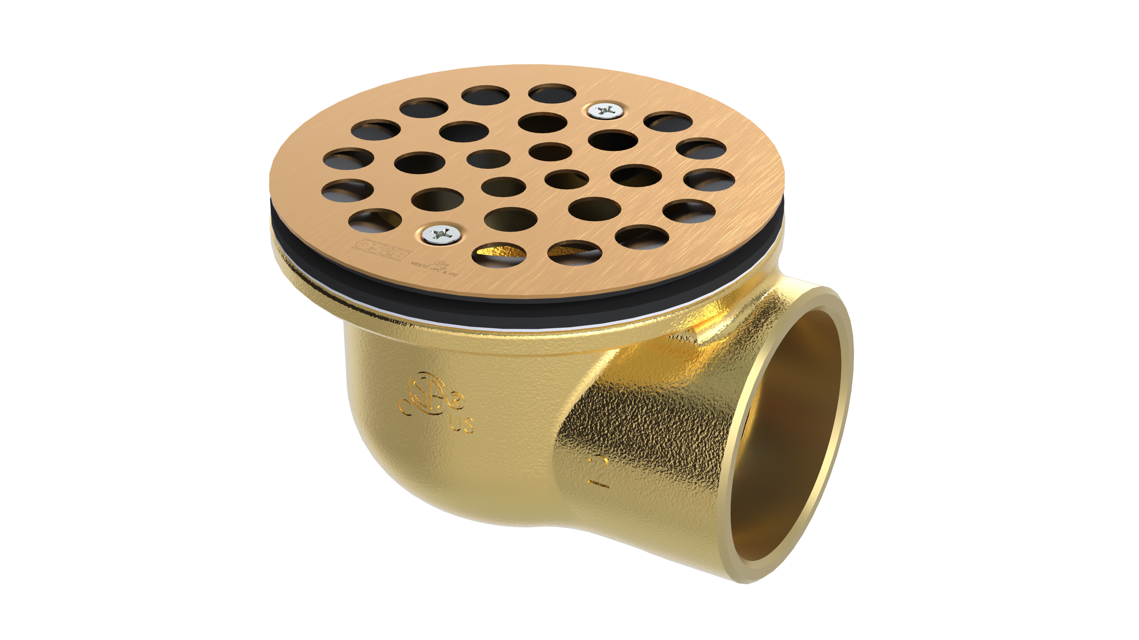 Low Profile 2" Brass Side Discharge Shower Drain for preformed shower bases. No muss, no fuss, no broken up concrete.