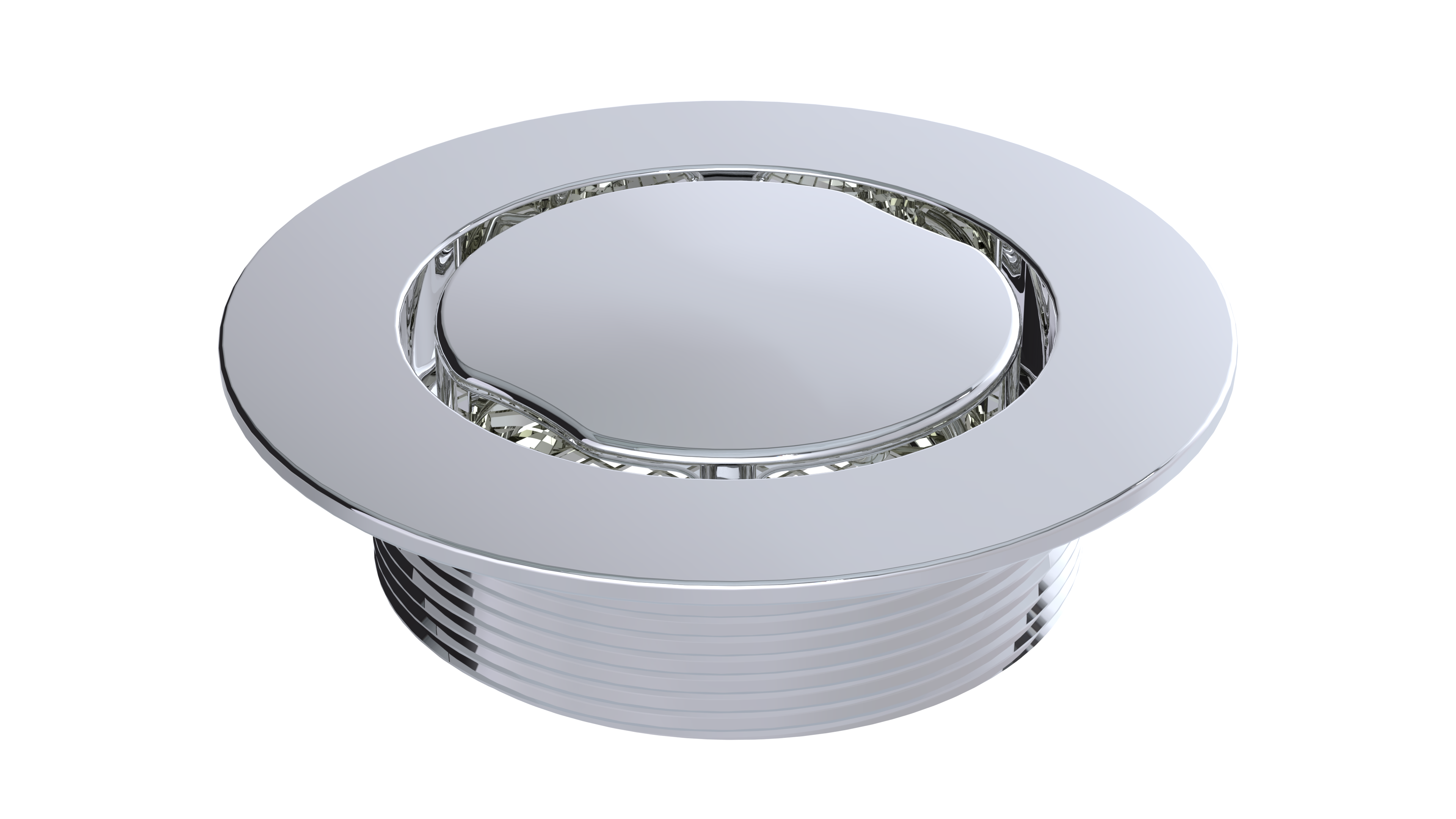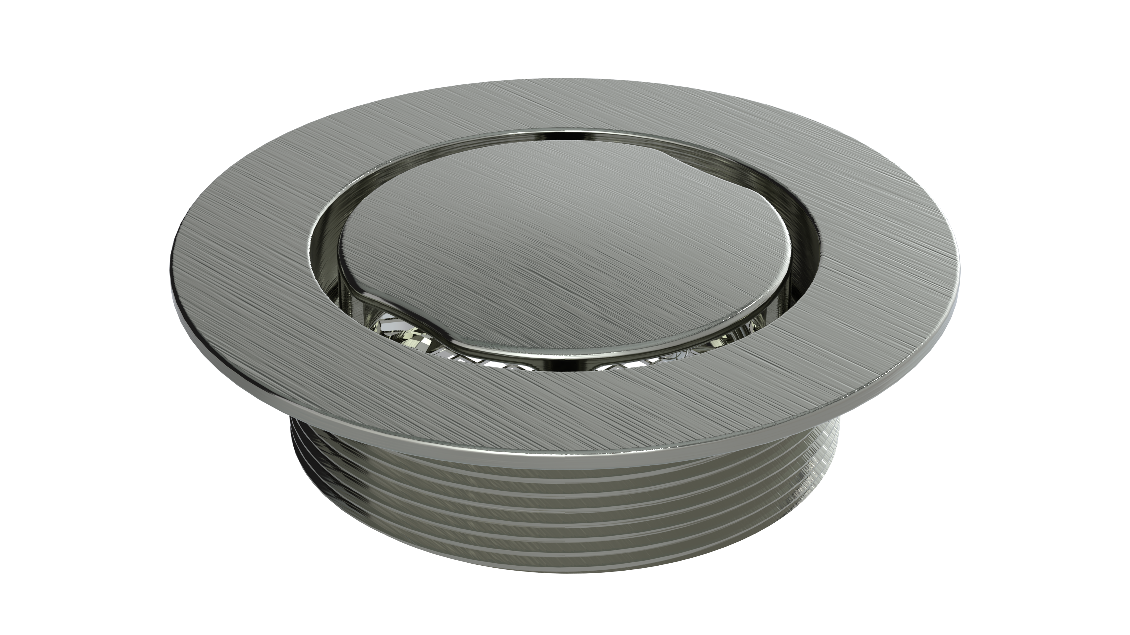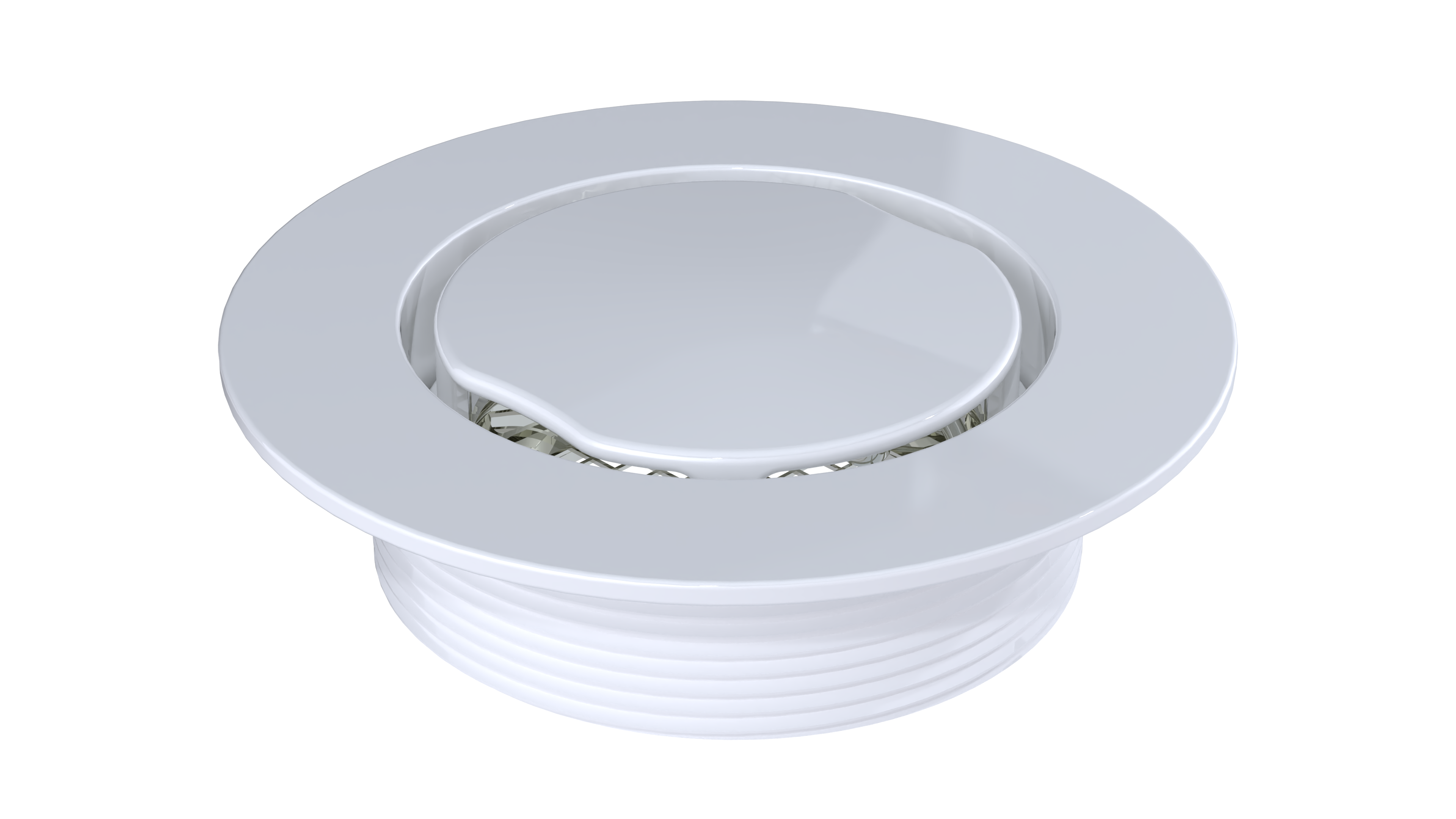 - 4” Round Trim featuring a 3” Threaded Drain Outlet