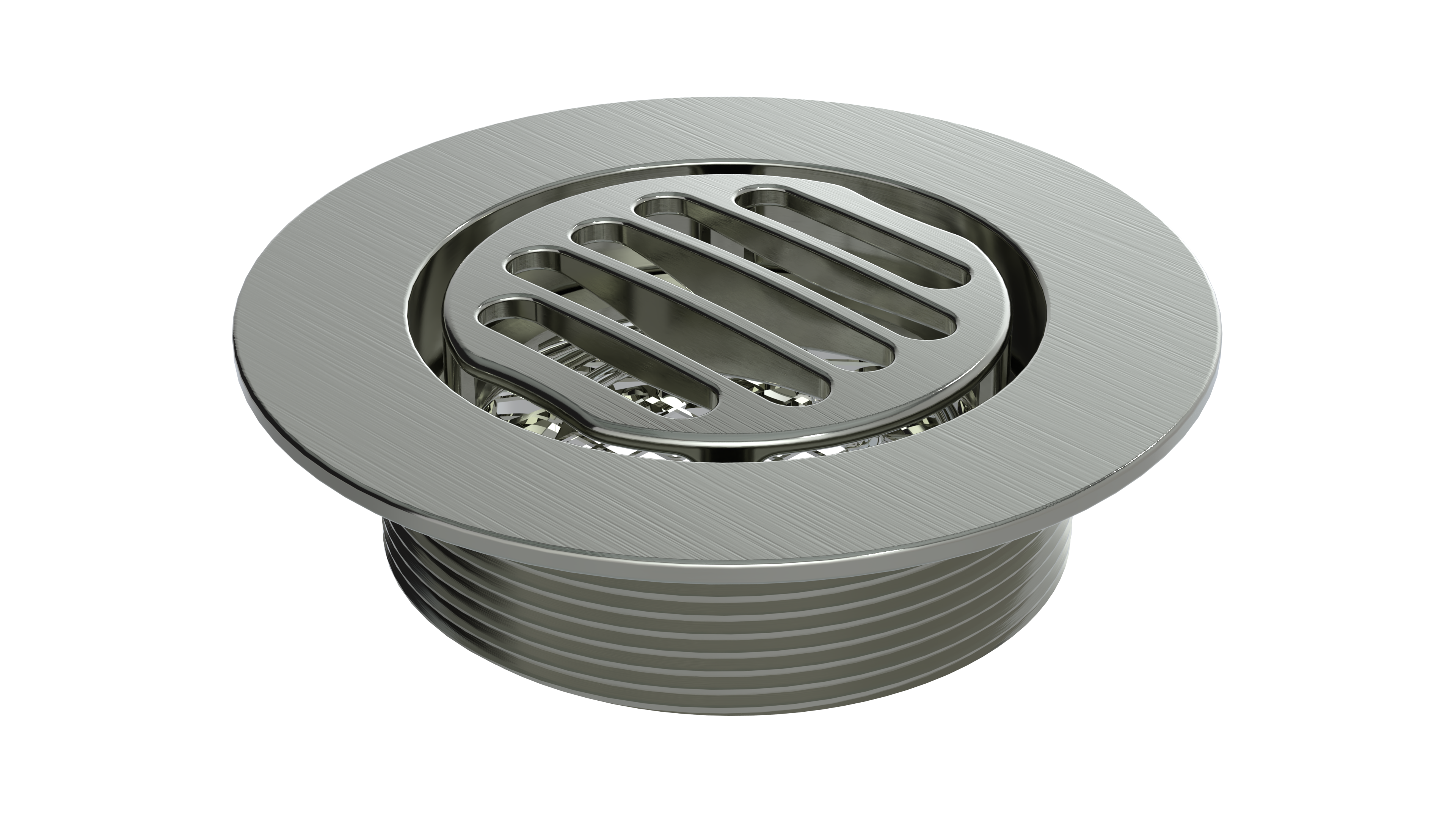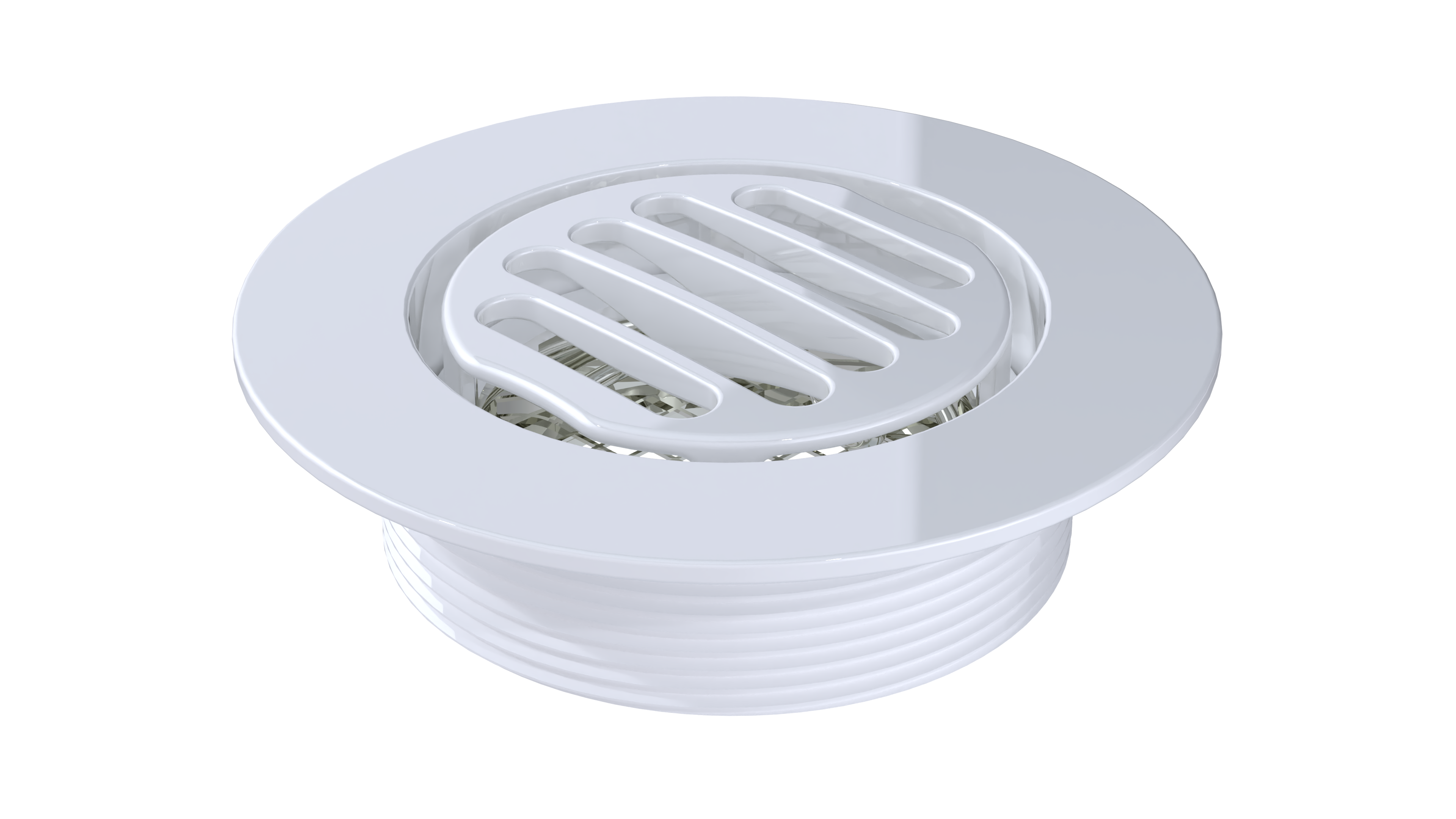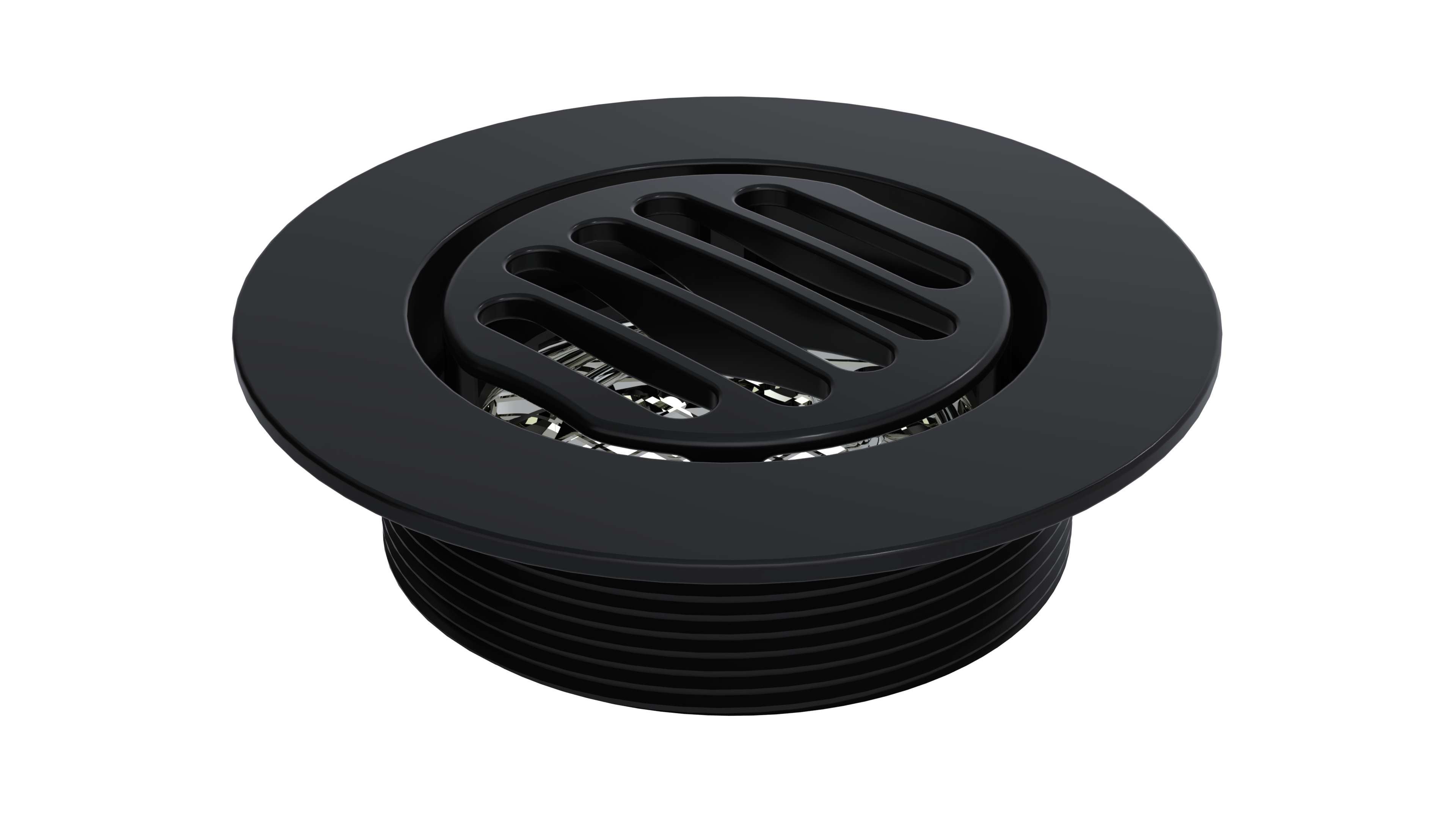 - 4” Round Trim featuring a 3” Threaded Drain Outlet