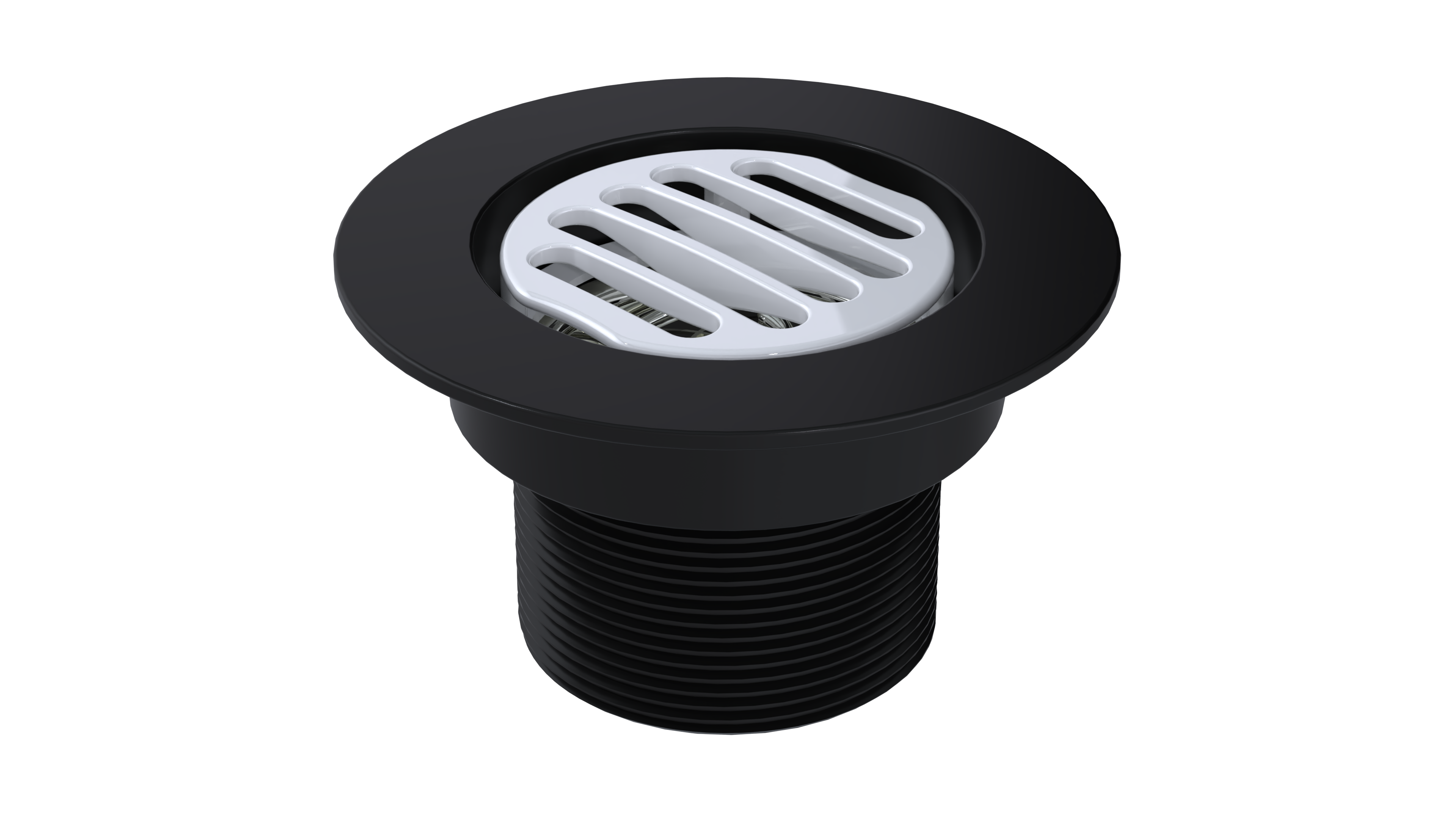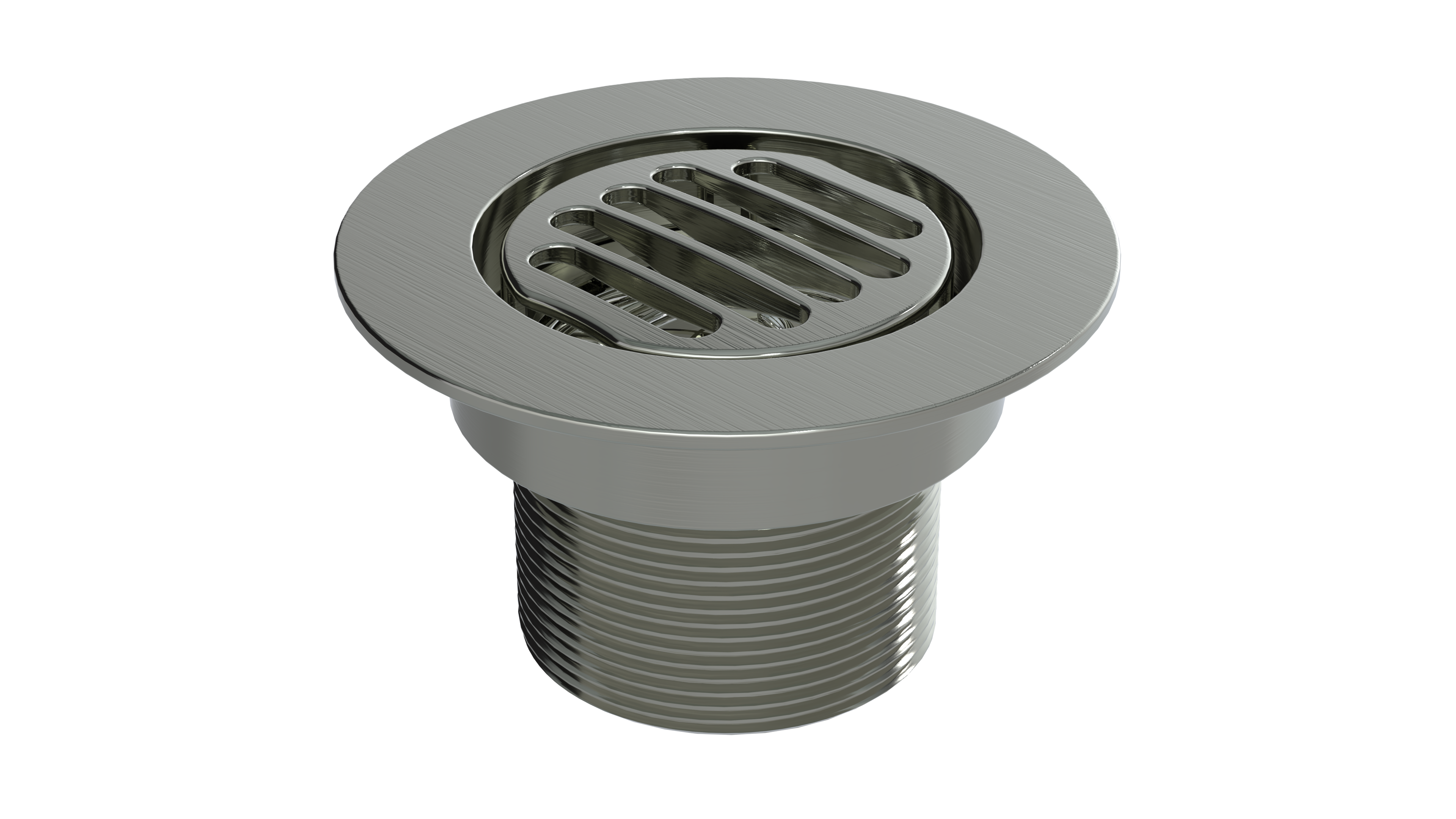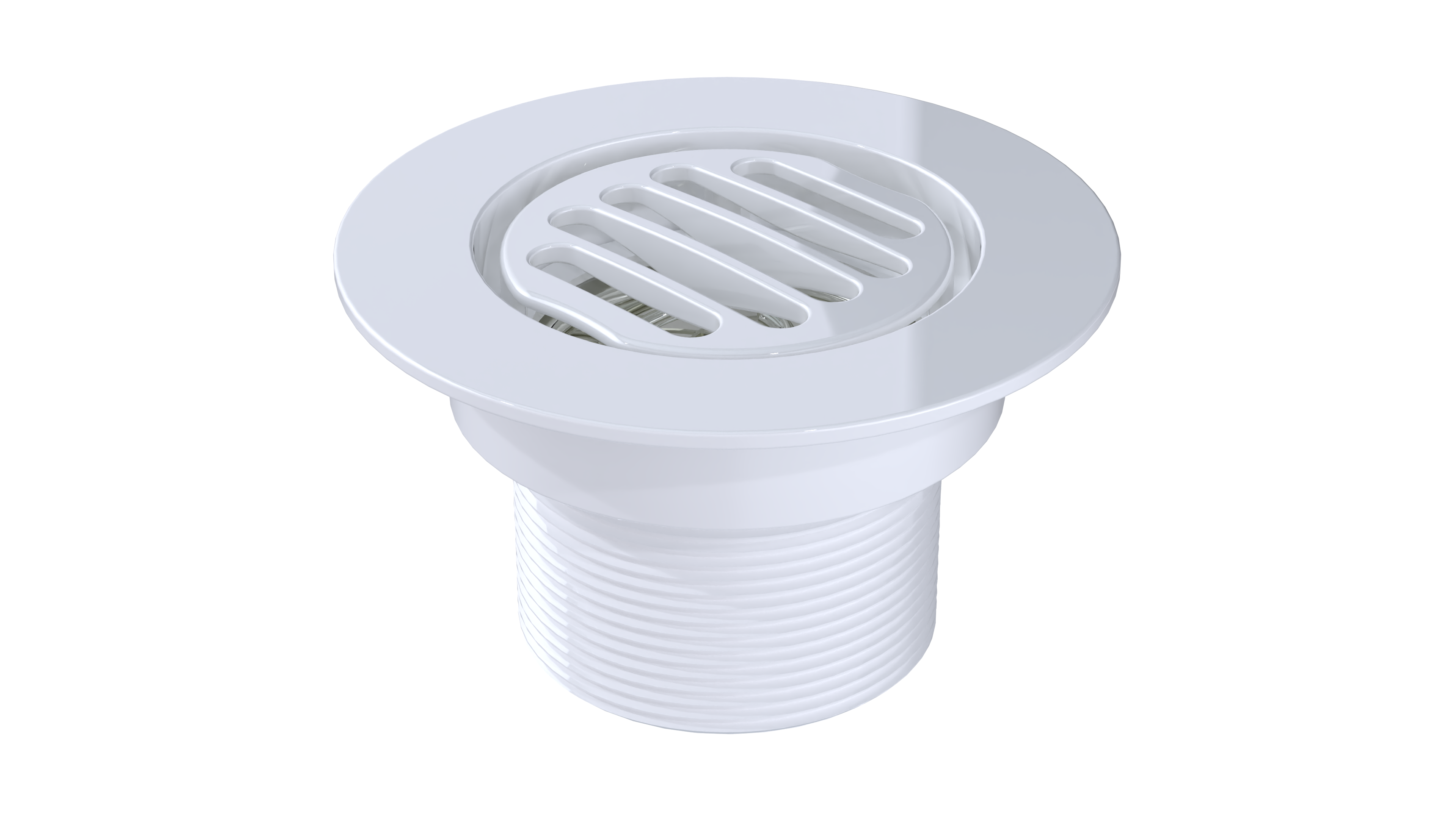 - 4” Round Trim featuring a 2” Threaded Drain Outlet