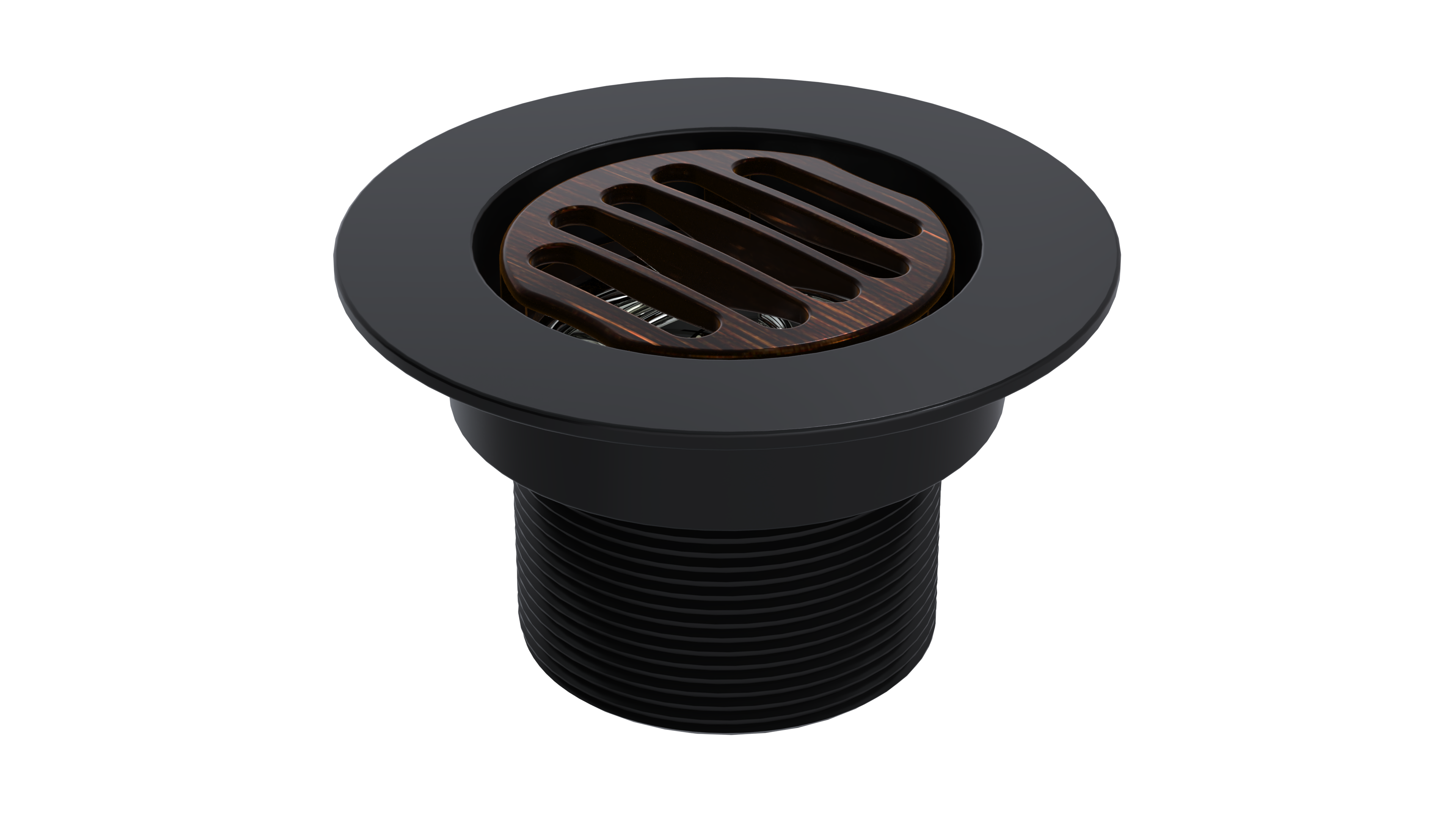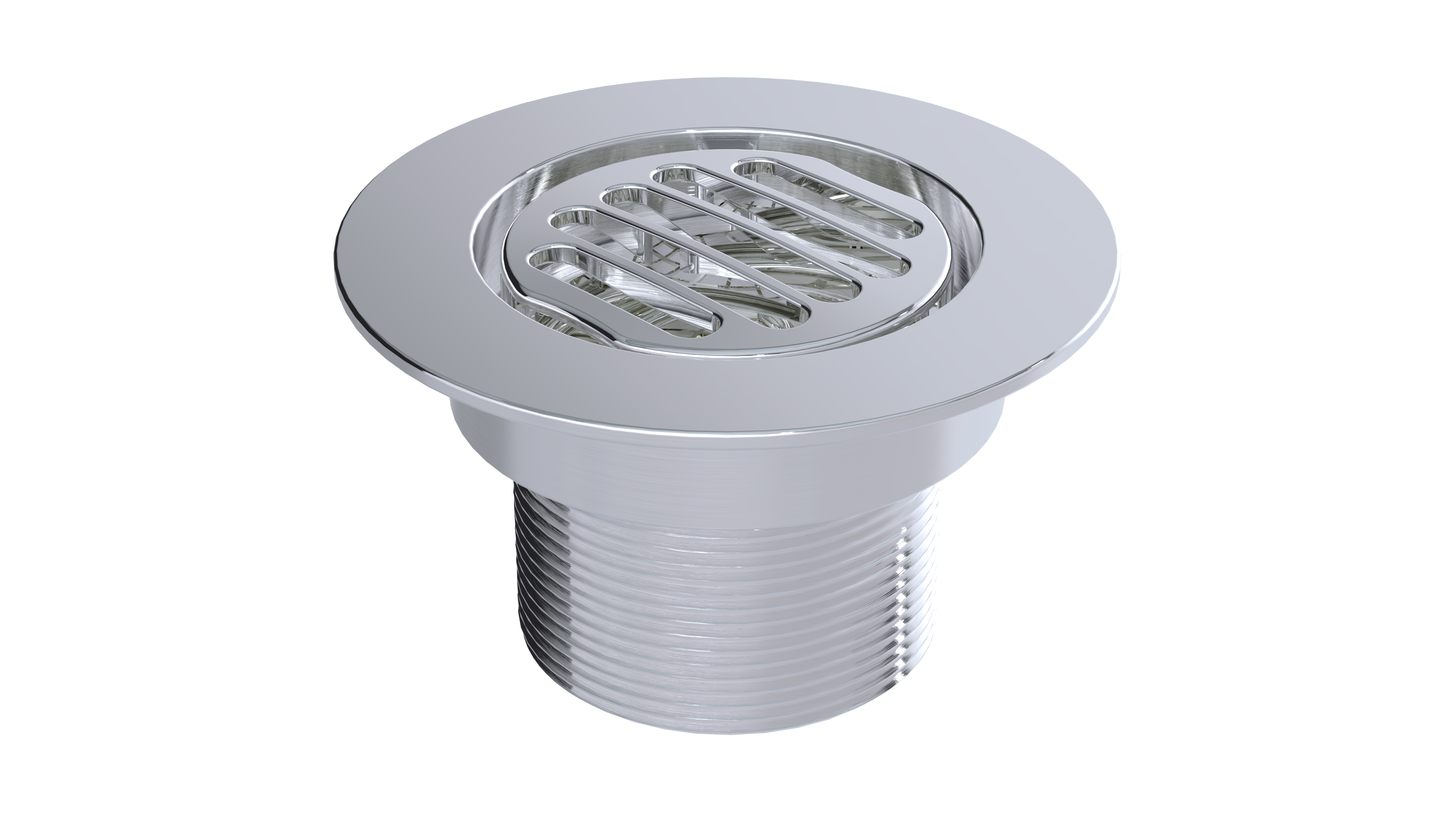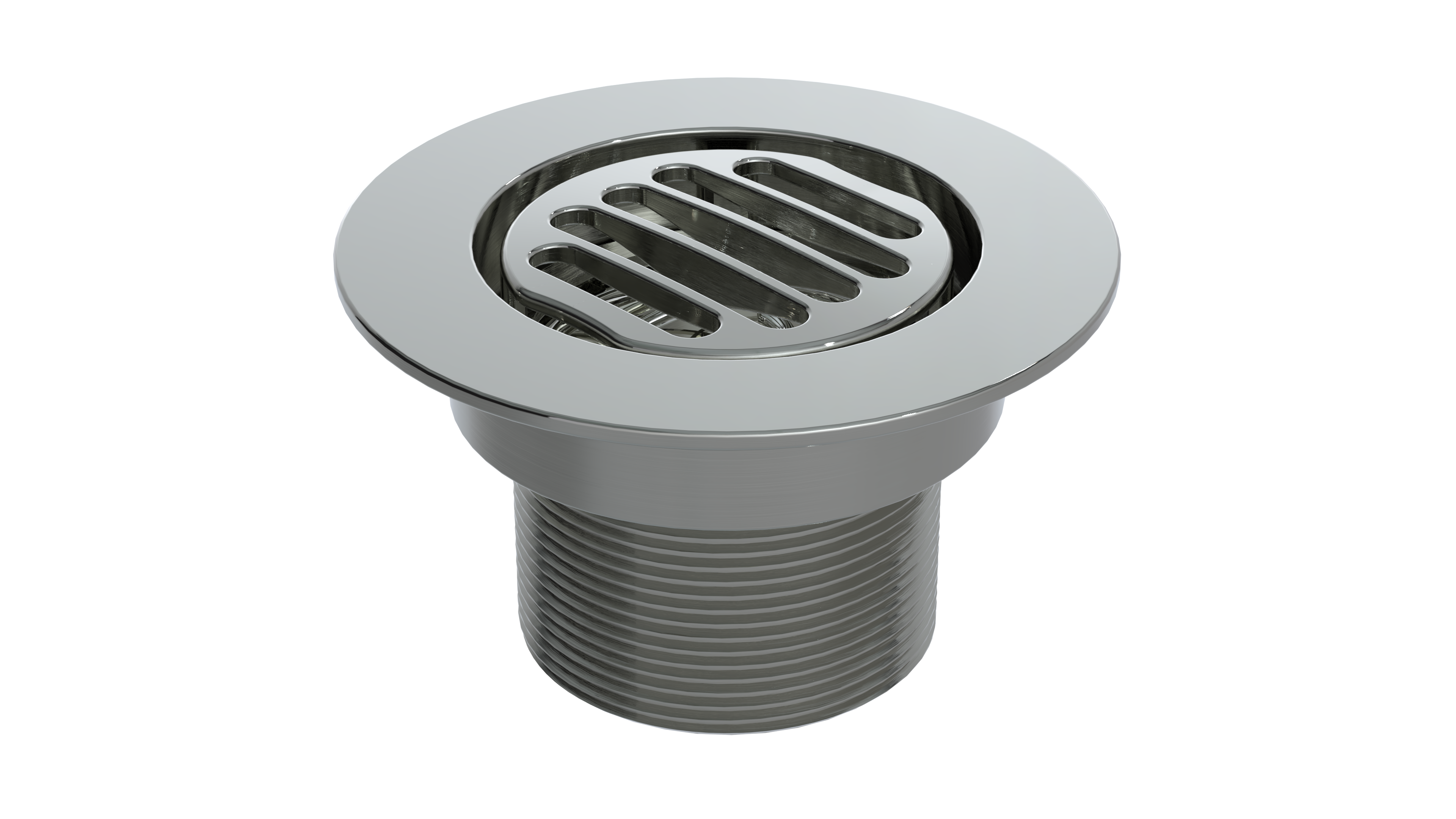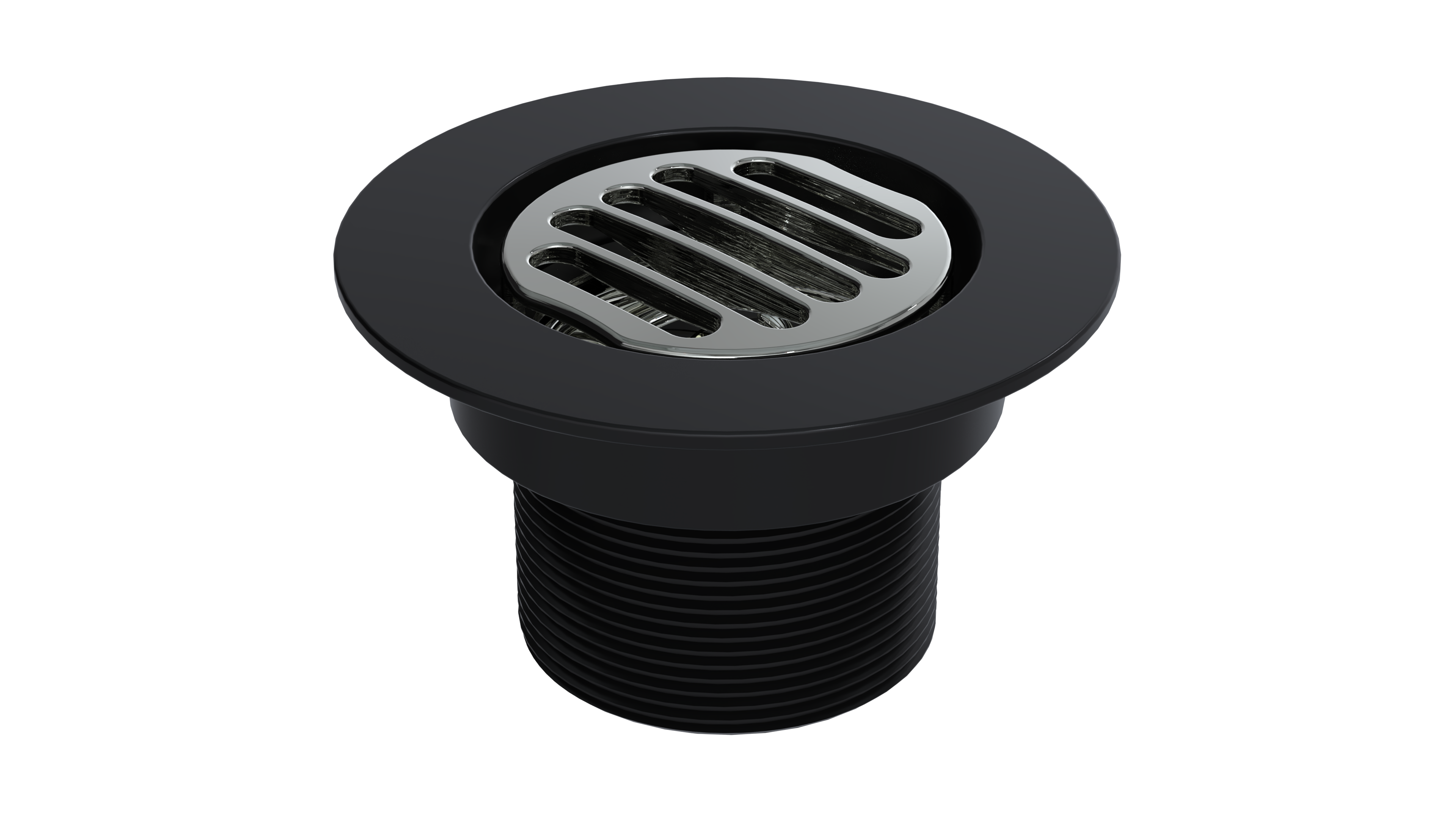 - 4” Round Trim featuring a 2” Threaded Drain Outlet