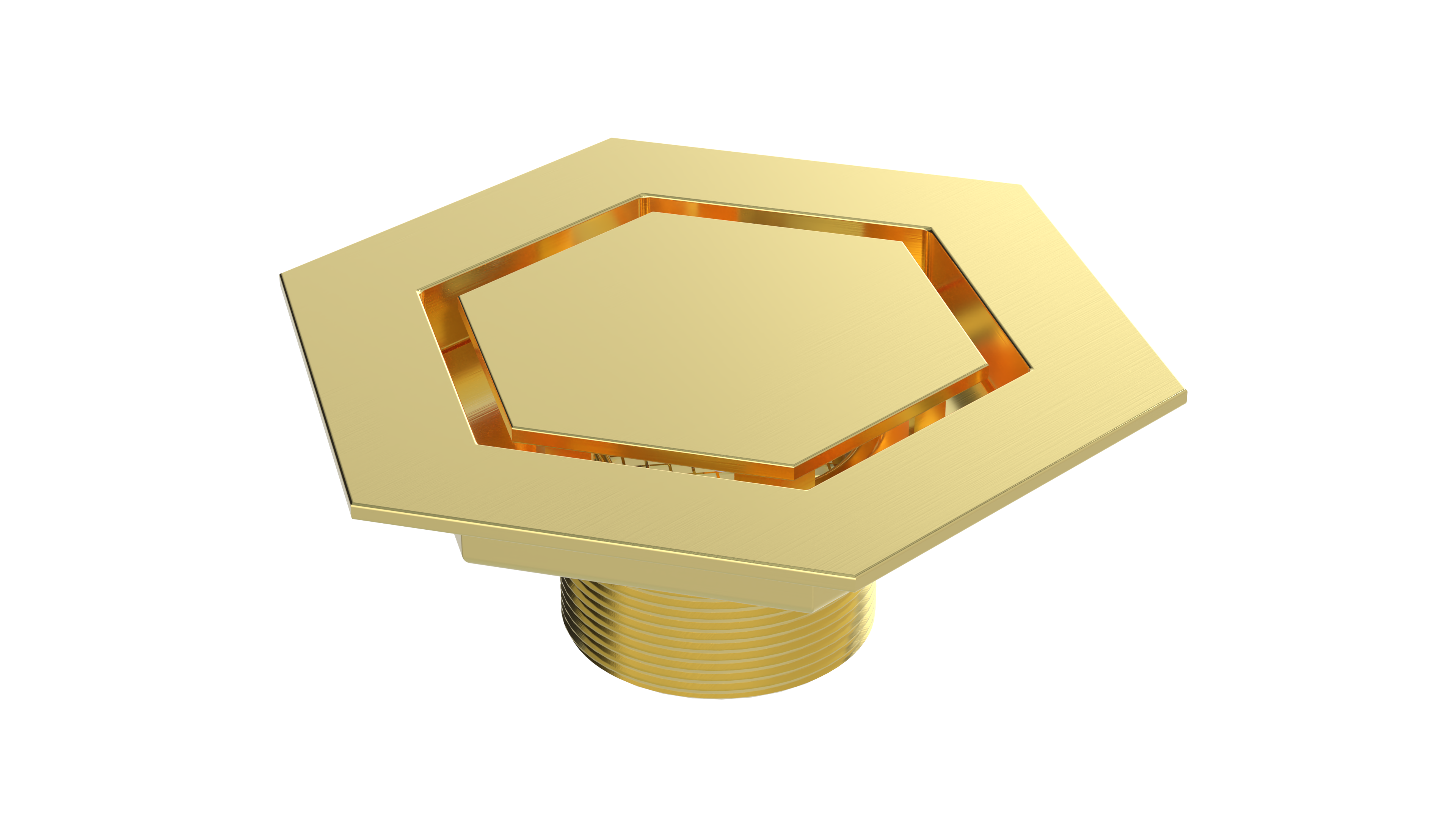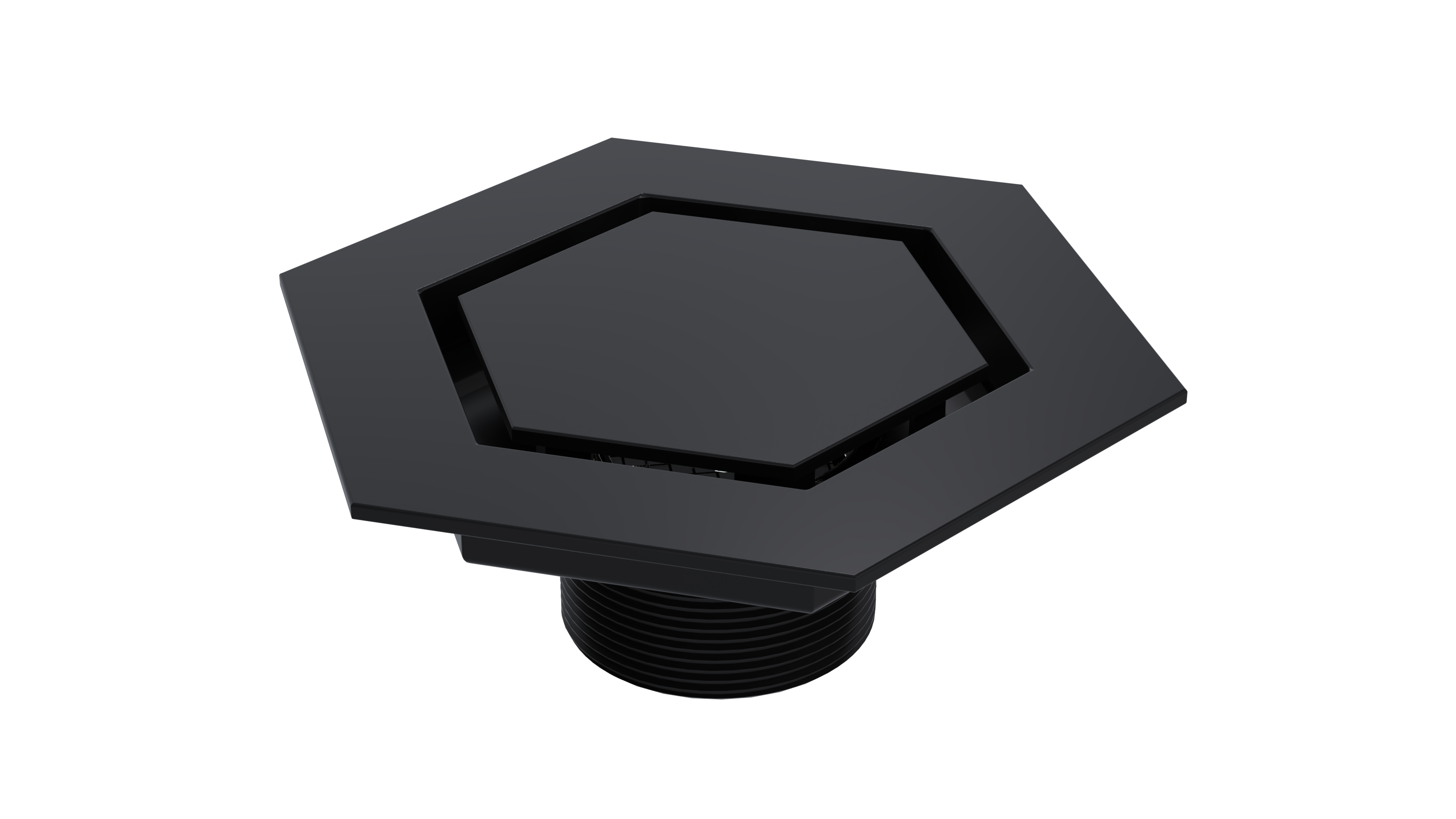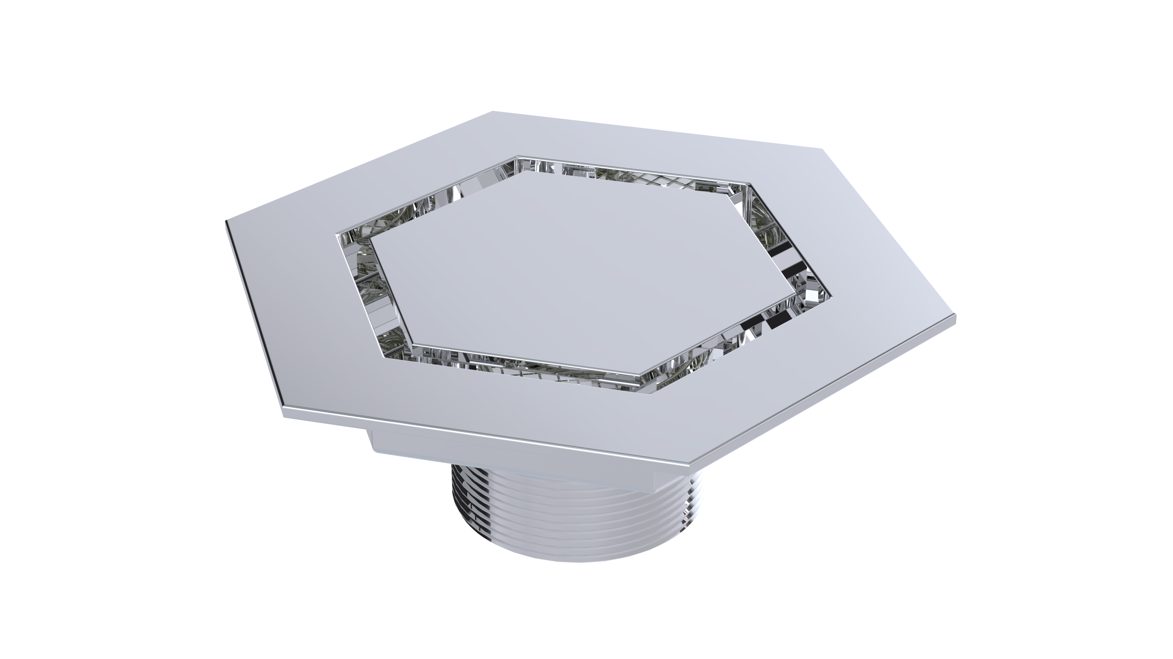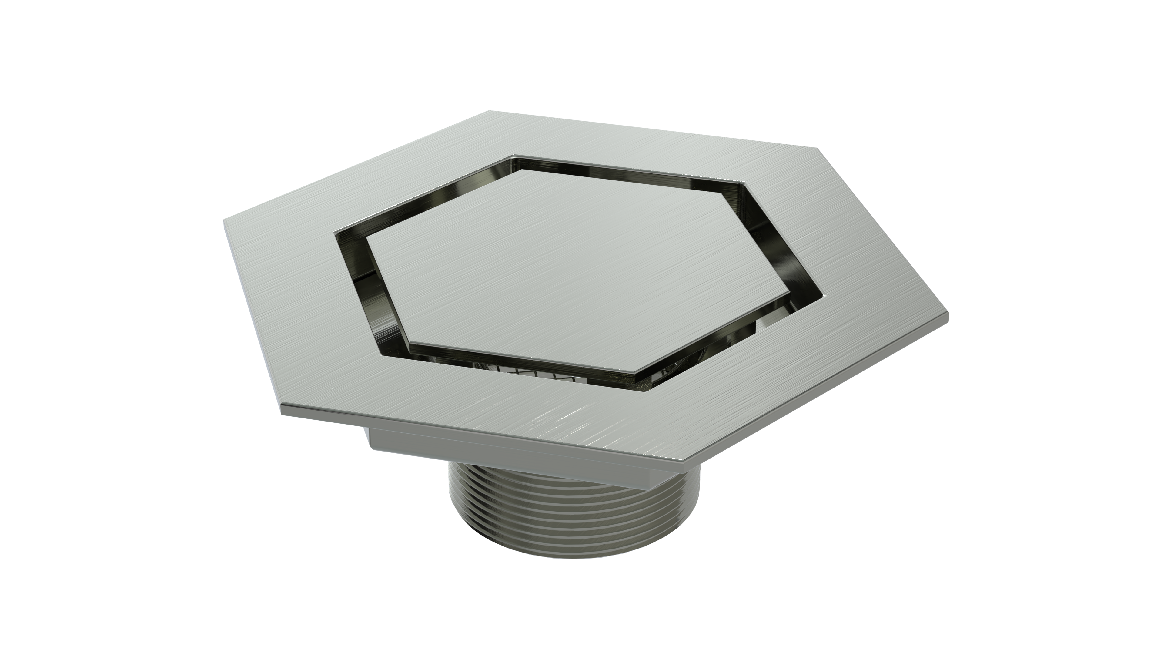 - 5-3/4” x 5-3/4” Hexagonal Trim featuring a 2” Threaded Drain Outlet