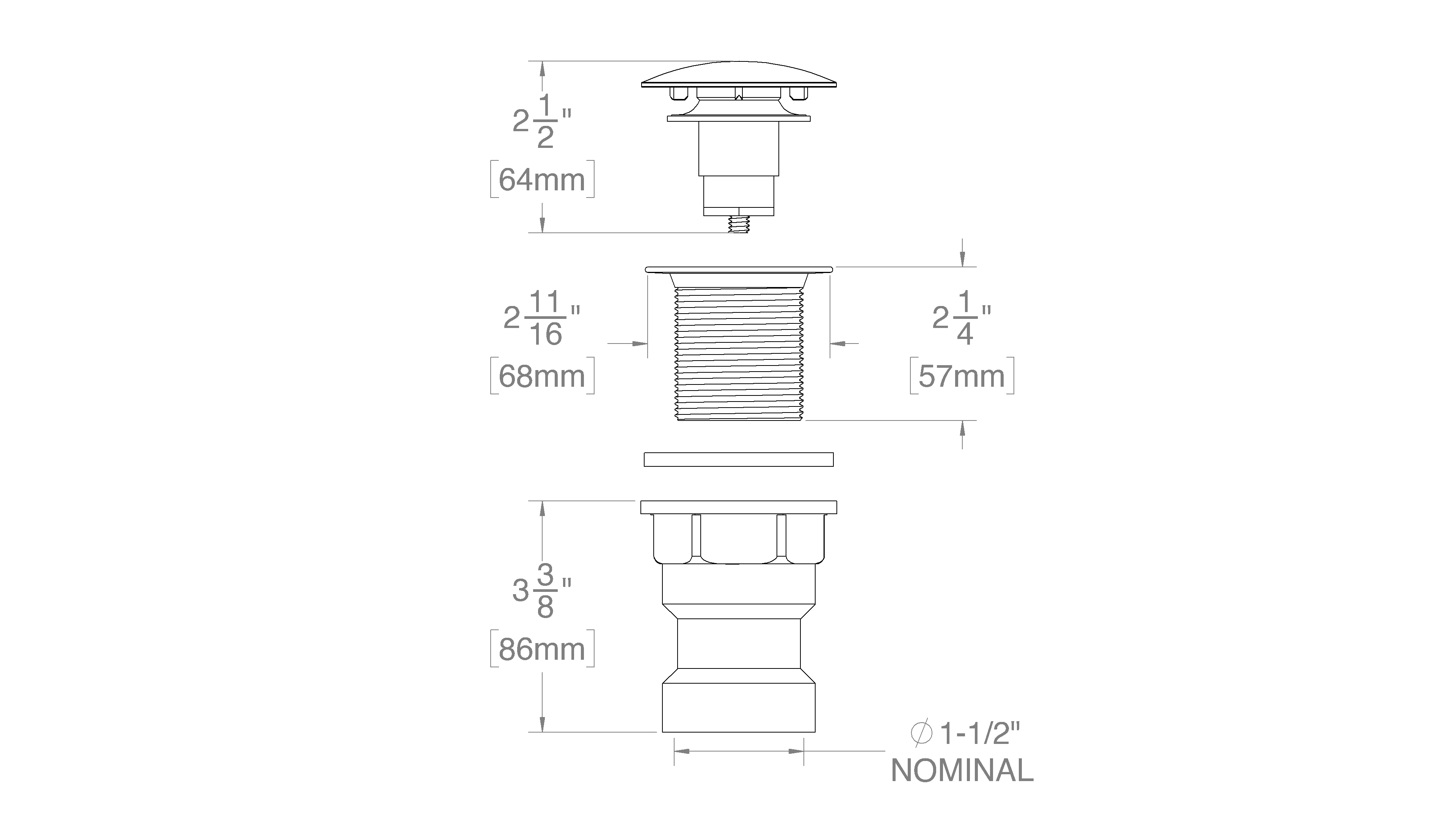 Integral Waste & Oveflow Waste Kit. For Bathtubs without Overflow.