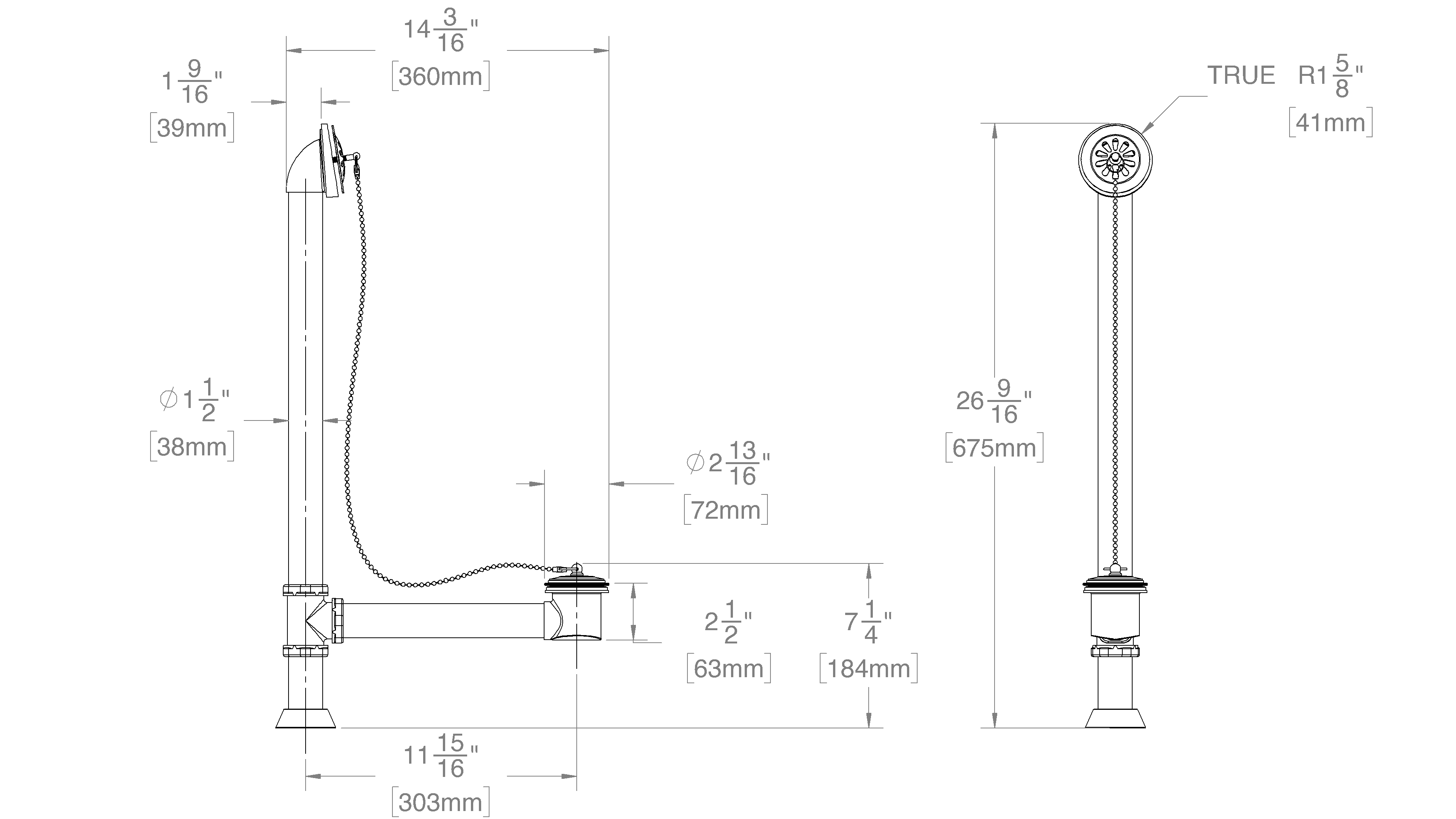 BRASS OFFSET CLAW FOOT BATH WASTE & OVERFLOW PLUG & CHAIN