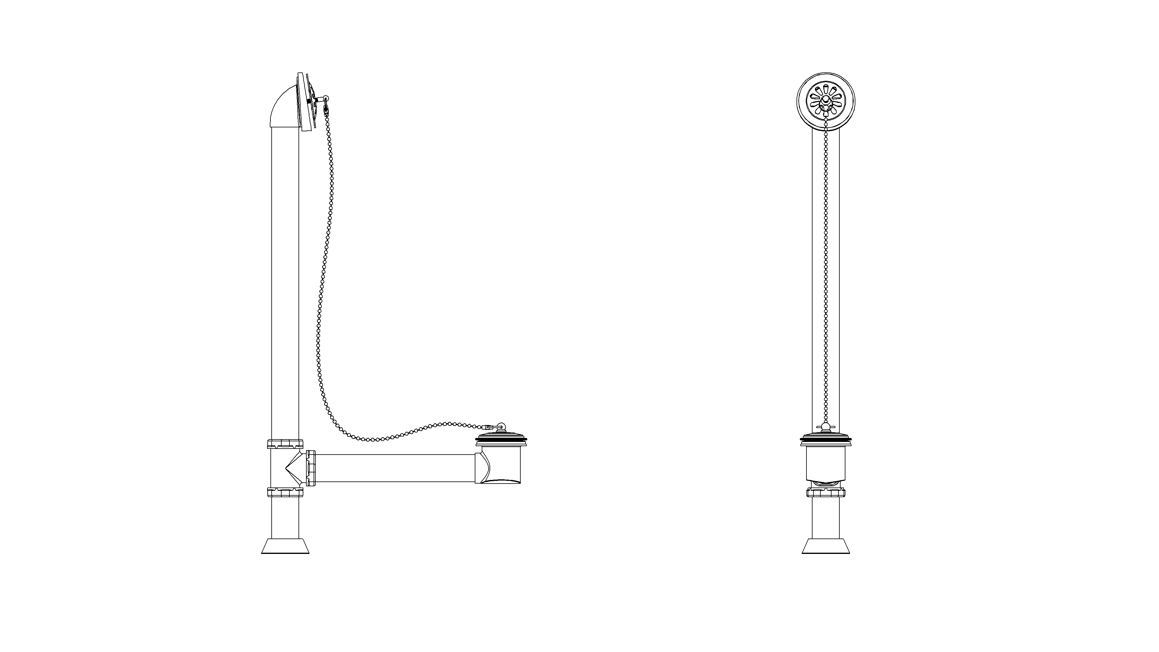 Features polished Nuts, Tee and Elbow. Tailpiece and Flange included. Deluxe brass Plug and heavy Chain.