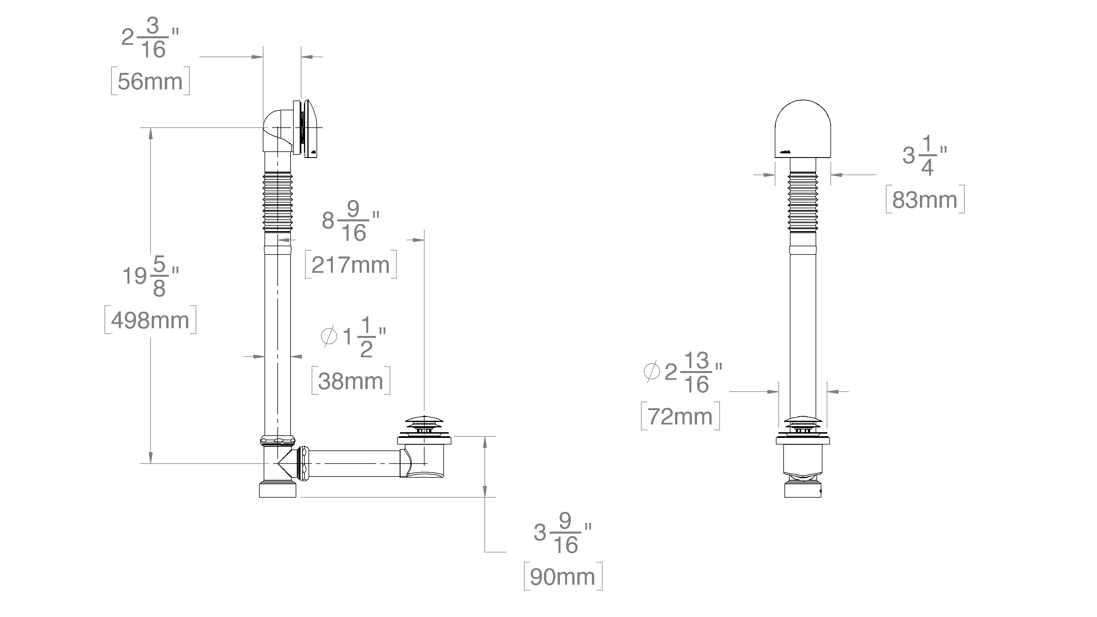 - Perfect Fit flexible Corrugated Overflow Tube can be bent to address Tub slope and/or Core Hole alignment